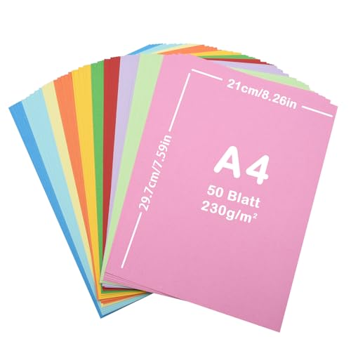 50 colored cards A4 230g/m³, colorful A4 sheets, lre Co. Carta for artistic paper DIY crafting 210 x 297 mm (230 g)